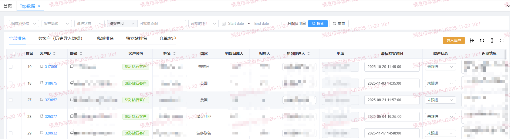 •分配给自己的客户,通过总消费金额排行,可体现客户优质程度。