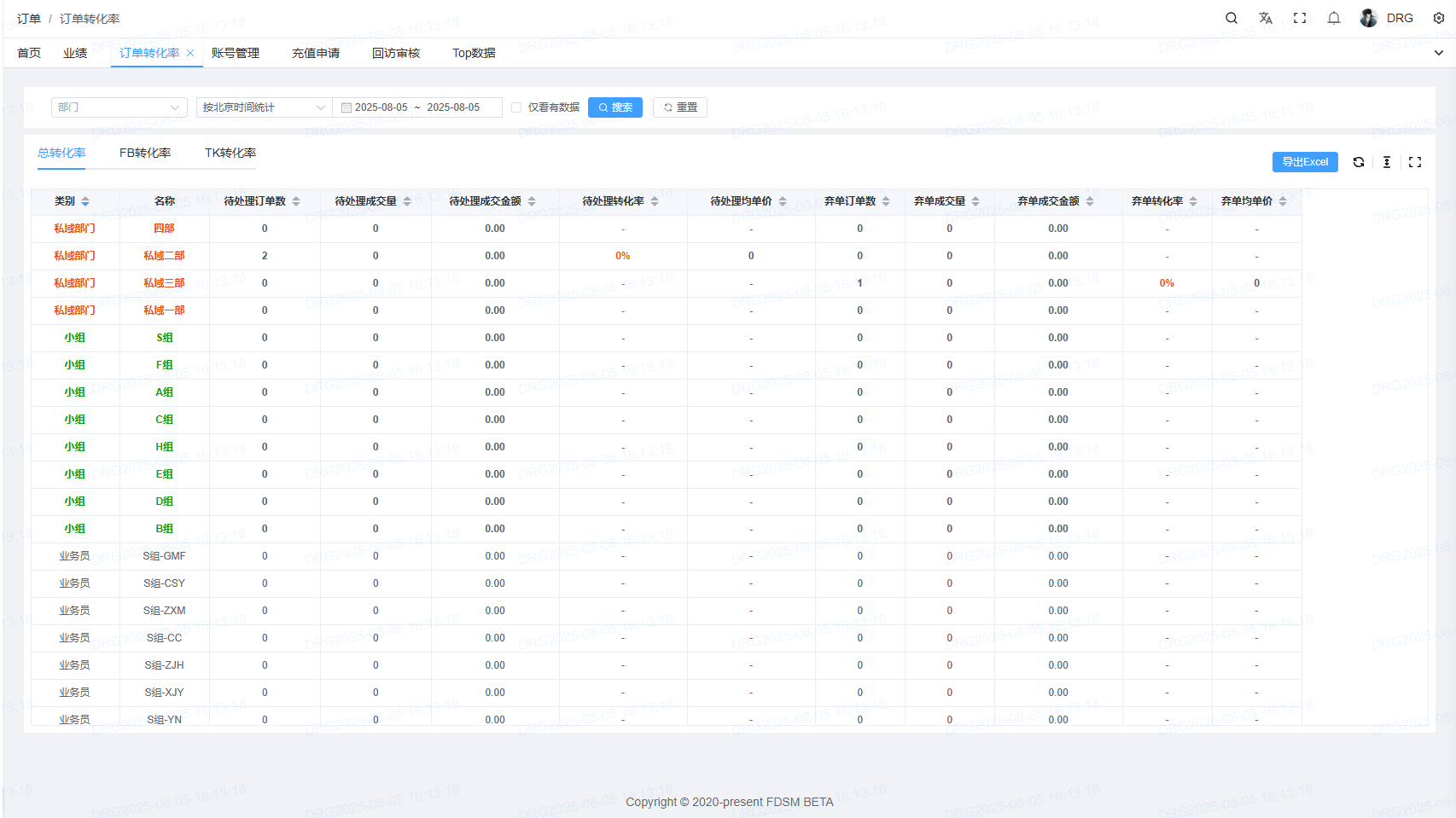 <span style="font-family:楷体">**用户点击订单下方“订单转化率”按钮进入订单转化率界面。**</span> <span style="font-family:楷体">**汇总业绩数据与独立站线索订单数量进行转化率统计**</span> <span style="font-family:楷体"> </span> <span style="font-family:楷体">**用户点击相应的转化率会进入相应的界面。**</span> <span style="font-family:楷体">**“导出Excel”按钮也会导出相应的数据**</span>