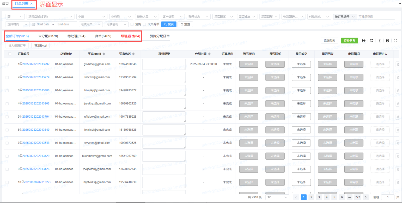 ### 1.1.1 功能简介 通过“独立站”下单同步过来的订单,管理员可以在订单列表进行查看、管理订单。 (角色:admin 超级管理员) ### 1.1.2 订单列表 订单列表界面、各个分类总数展示。